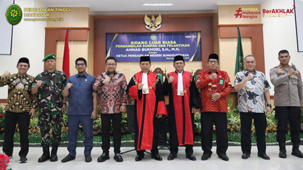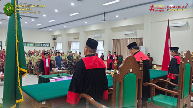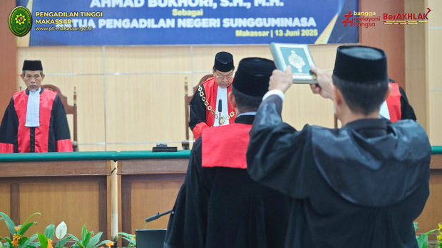 Makassar, 13 Juni 2025 || kembali Bertempat di Aula Prof. Dr. H. M. Hatta Ali, S.H., M.H. kali ini Ketua Pengadilan Tinggi Makassar YM. Dr. H. Zainuddin, S.H., M.Hum. mengambil sumpah jabatan dan melantik YM. Ahmad Bukhori, S.H., M.H. sebagai Ketua Pengadilan Negeri Sungguminasa. Hakim Tinggi YM. Adhar, S.H., M.H. dan YM. H. Makmur, S.H., M.H. berturut-turut sebagai Hakim Anggota I dan Hakim Anggota II