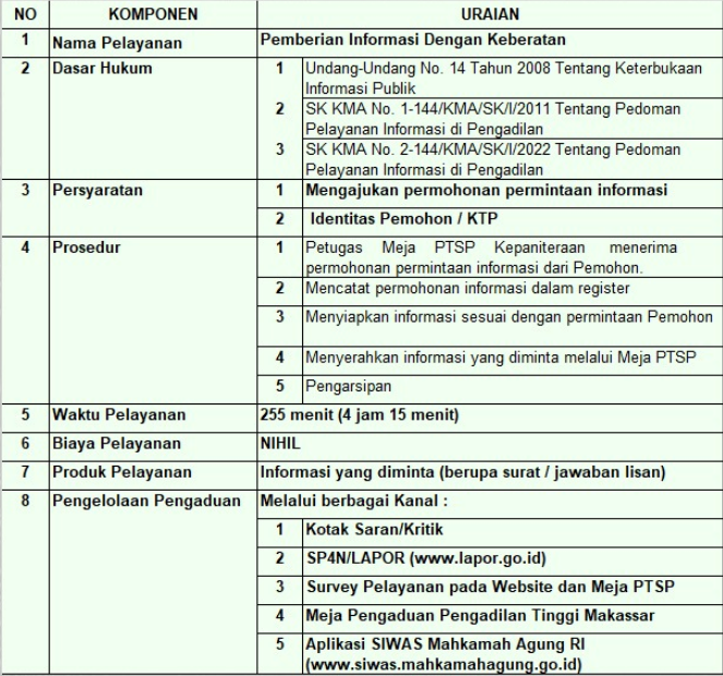Standar Layanan Pemberian Informasi Dengan Keberatan